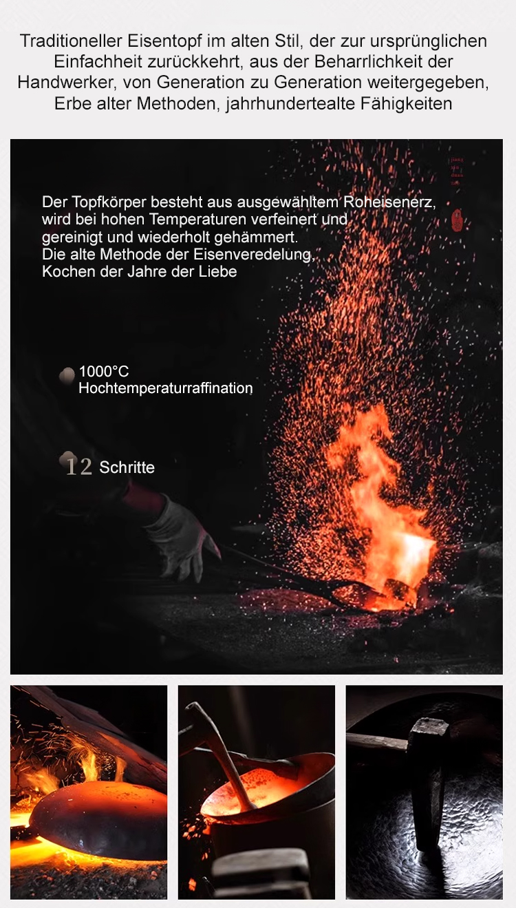【Made in Japan】 Eine hochwertige, unbeschichtete Pfanne aus reinem Eisen – ein Meisterwerk, das von Handwerkern sorgfältig von Hand geschmiedet wurde.