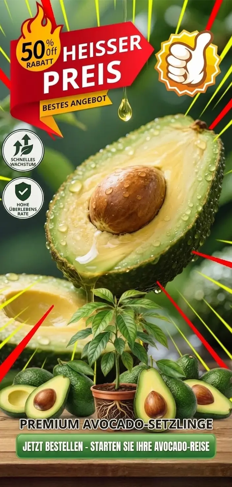🌱 Biologische Avocadopflanze – 99% Überlebensrate🥑 Große, cremige Früchte mit intensivem Geschmack❤️ Reich an Omega-3 & Ballaststoffen, cholesterinfrei, unterstützt Herz-Kreislauf-Gesundheit🏡 Für Balkon & Garten geeignet, trägt noch im selben Jahr Früchte❄️ Winterhart & pflegeleicht✅ Kostenloser Ersatz bei Tot, 14-tägiges Rückgaberecht, gratis Pflegeanleitung – risikolos kaufen