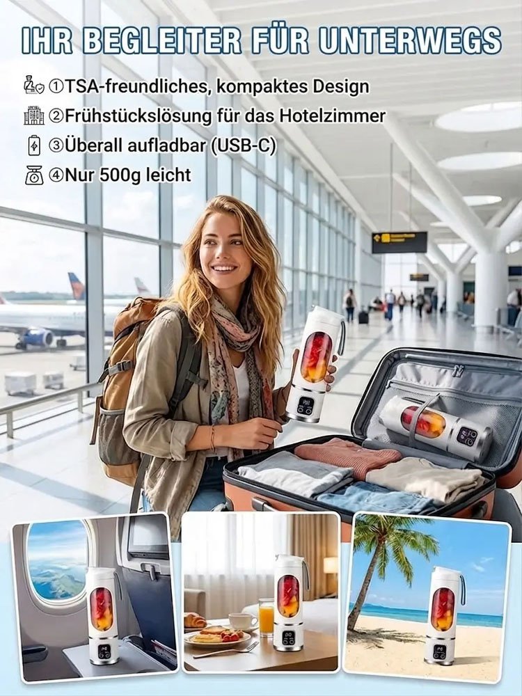 Kompakter tragbarer Mixerbecher 🥤 5 Sekunden Smoothie, kernglos & ohne Rückstände ✅