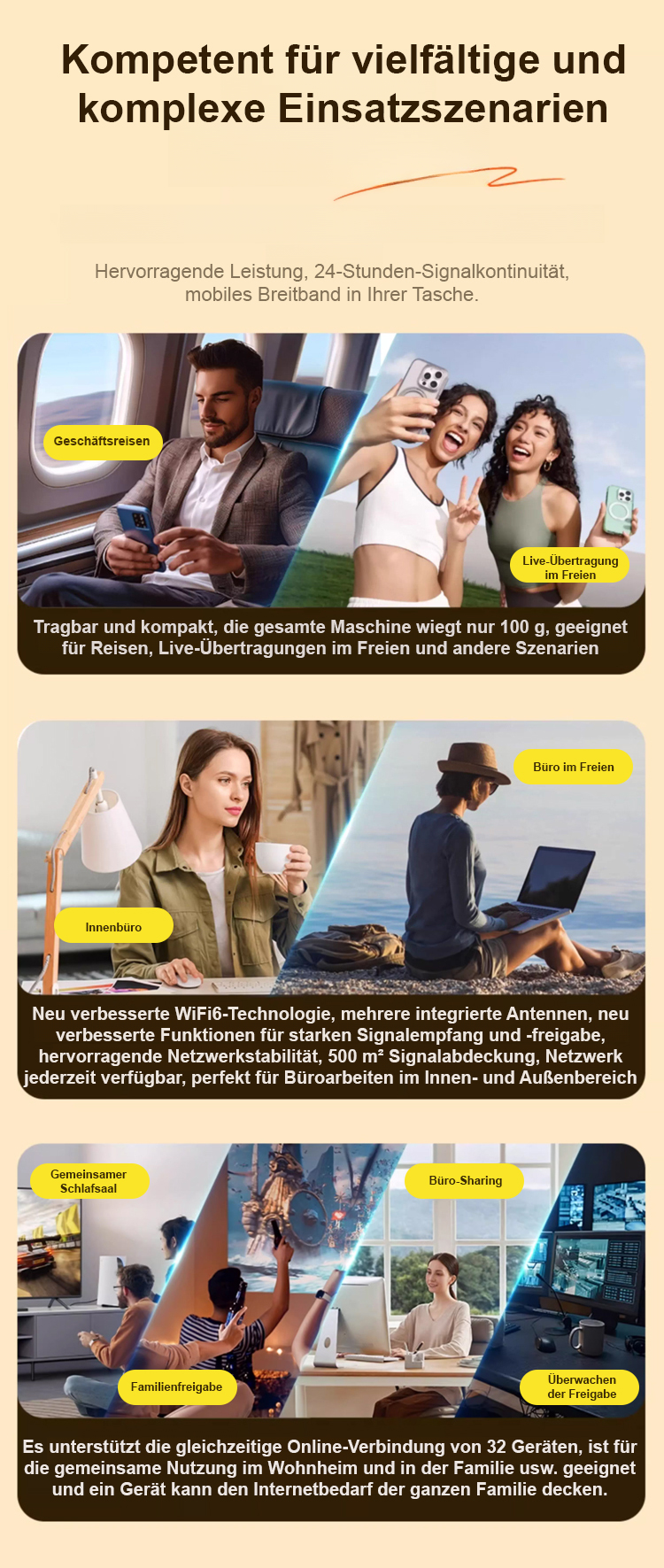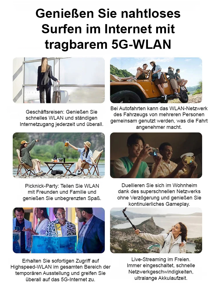 【Plug-and-Play, lebenslang kostenlos】🌐 Universelles tragbares WLAN-Netzwerk. Ideal für Reisen oder Camping im Freien.